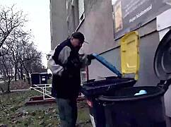Dirty outdoor jerking off hobby with big natural tits