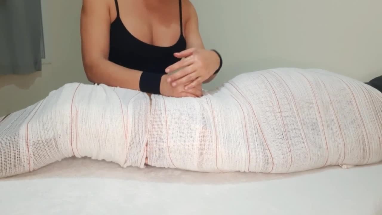 she worked a femdom handjob with two cumshots on legs