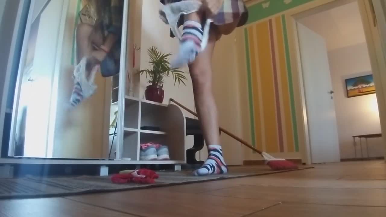Blonde Milf Frina Shaves Hairy Pussy in Shower. No Panties Under Dress with High Heels!