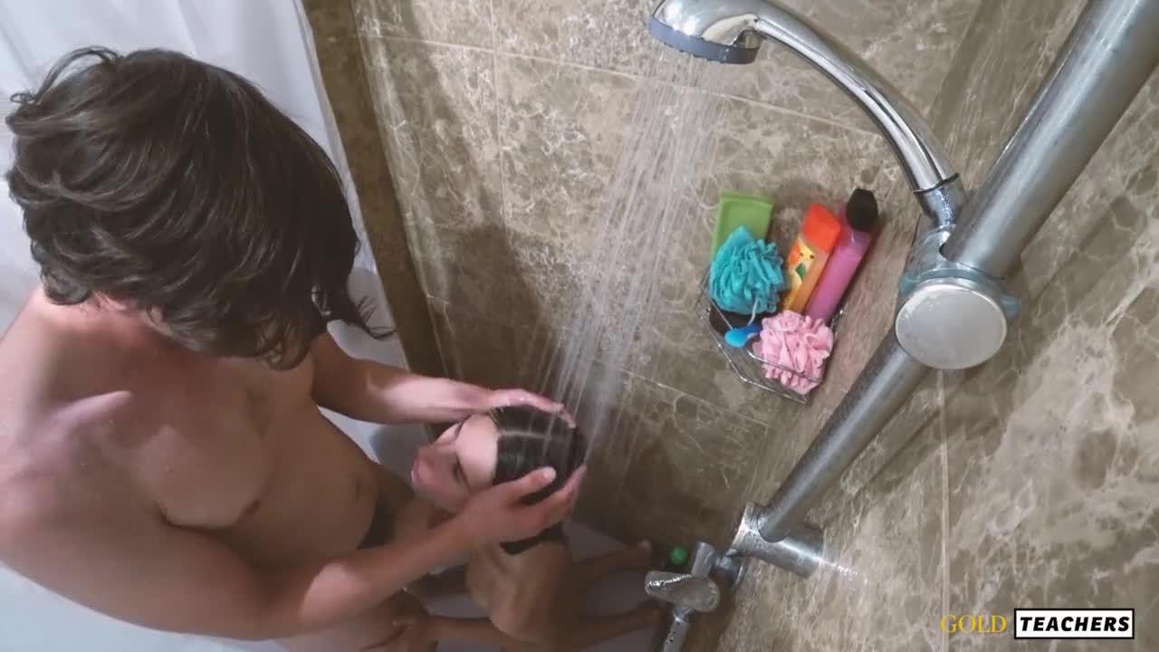 aww, cute brunette sets up a super naughty shower surprise for her gf 😍