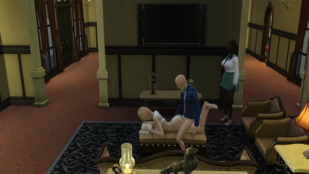 In The Sims, the wife sneaks a threesome with the boys while watching TV, anal and oral fun.