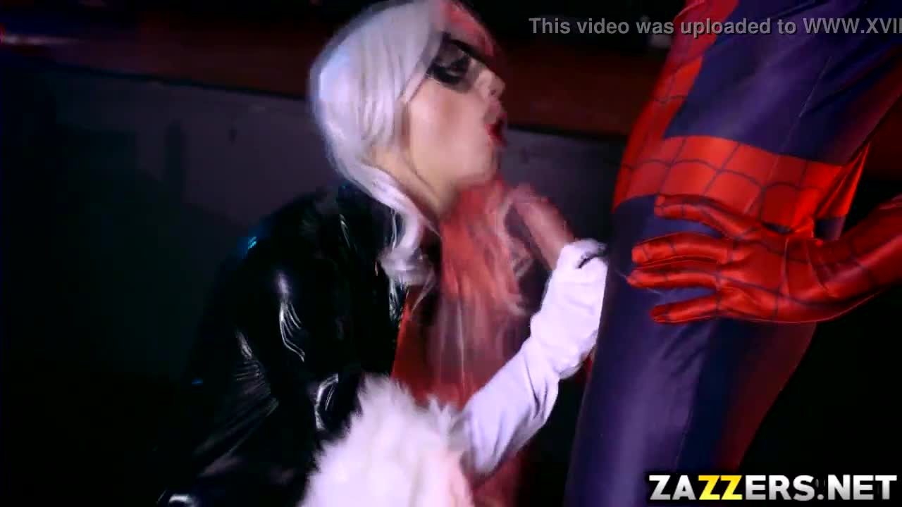 Black cat devours spideys massive cock in deep throat sucking