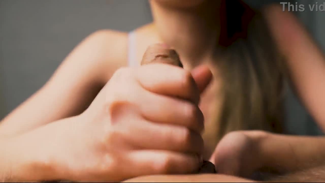 Amateur gives intense handjob to morning wood cock